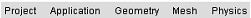 | Menus bar | Access to the different menus: Project, Application, Geometry, Mesh, Physics |