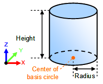 • The coordinates of the point center of the circle that is the base of the cylinder, or an existing point