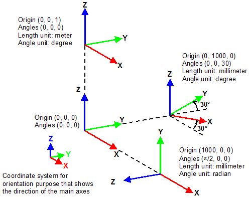 A coordinate system defined with respect to the local coordinate system inherits the units of the reference coordinate system (parent coordinate system).