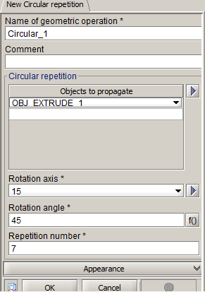 Choice of the name of the generated Geometric operation (by default: CIRCULAR _1) |