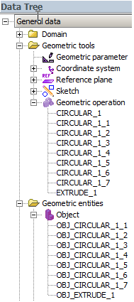 - As many geometric operations as the objects repeated CIRCULAR_1_1, CIRCULAR_1_2… (it permits to isolate each object duplicated and to use them independently then).
