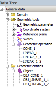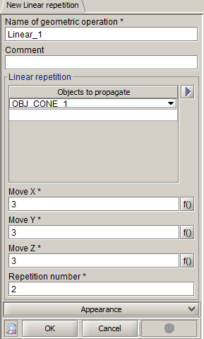 • The addition of the geometric operations LINEAR_1_1, LINEAR_1_2… in each of the objects resulting from the repetition (OBJ_LINEAR _1_1, OBJ_LINEAR _1_2, …)