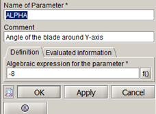 | 3 | Modify the angle of the blade around Y-Axis: [ALPHA] = -8° |