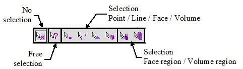 The proposed choices in the menu Selection or in the toolbar Selection, relate to the graphic entities; they are presented in the figure and the table below.