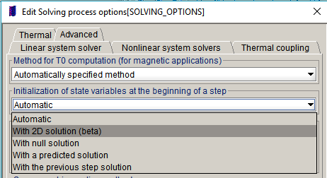 On the other hand, on projects without non-linear convergence troubles, the contribution of the 2D solution can be minor and the global solving time can increase. It is then unadvised to use that strategy on Magneto Static projects.