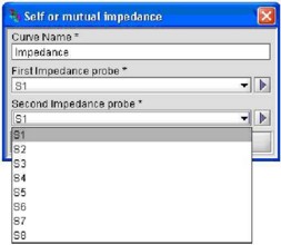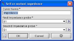Give a name to the 2D curve and select the two probes among which to plot the impedance. If the same probe is selected in both boxes, a curve with the self impedance will be plotted; otherwise it will be a curve with mutual impedance |