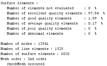 | → | Information on the quality of the mesh elements is displayed in the history zone. |