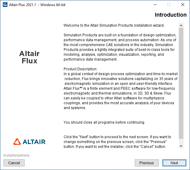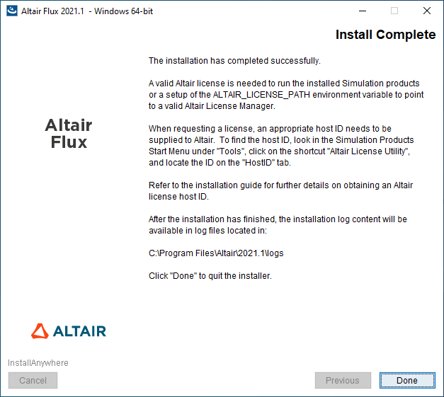 - with an administrator account: the installation directory is C:\Program Files\Altair\2021.1