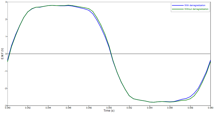 Figure 3. F.E.M avec et sans désaimantation pour