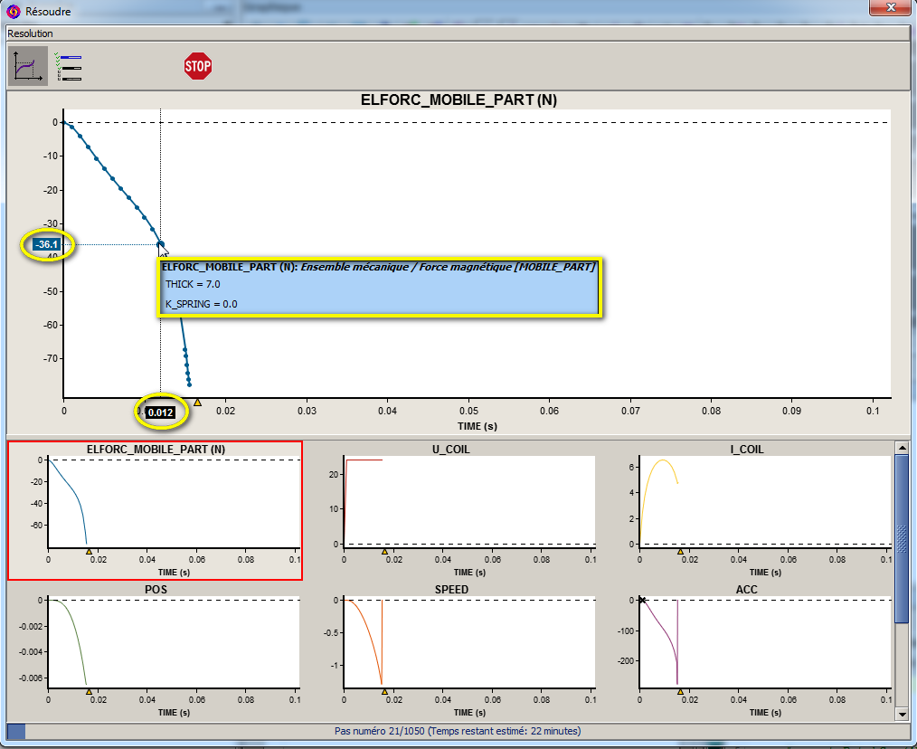 Ce contexte est un aperçu des résultats en cours de résolution. Les grandeurs affichables sont visualisables sur plusieurs graphes sur lesquels un certain nombre d’actions sont possibles. (voir les blocs suivants)