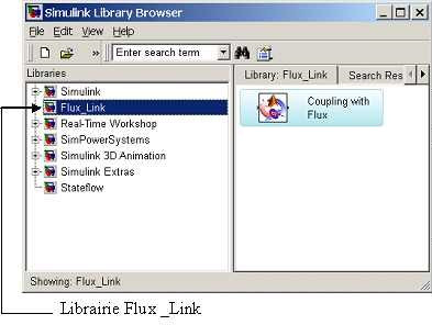 A l'ouverture de Matlab Simulink via le superviseur de Flux (obligatoirement), le nouveau bloc « Coupling with Flux » est ajouté à la librairie de Simulink.