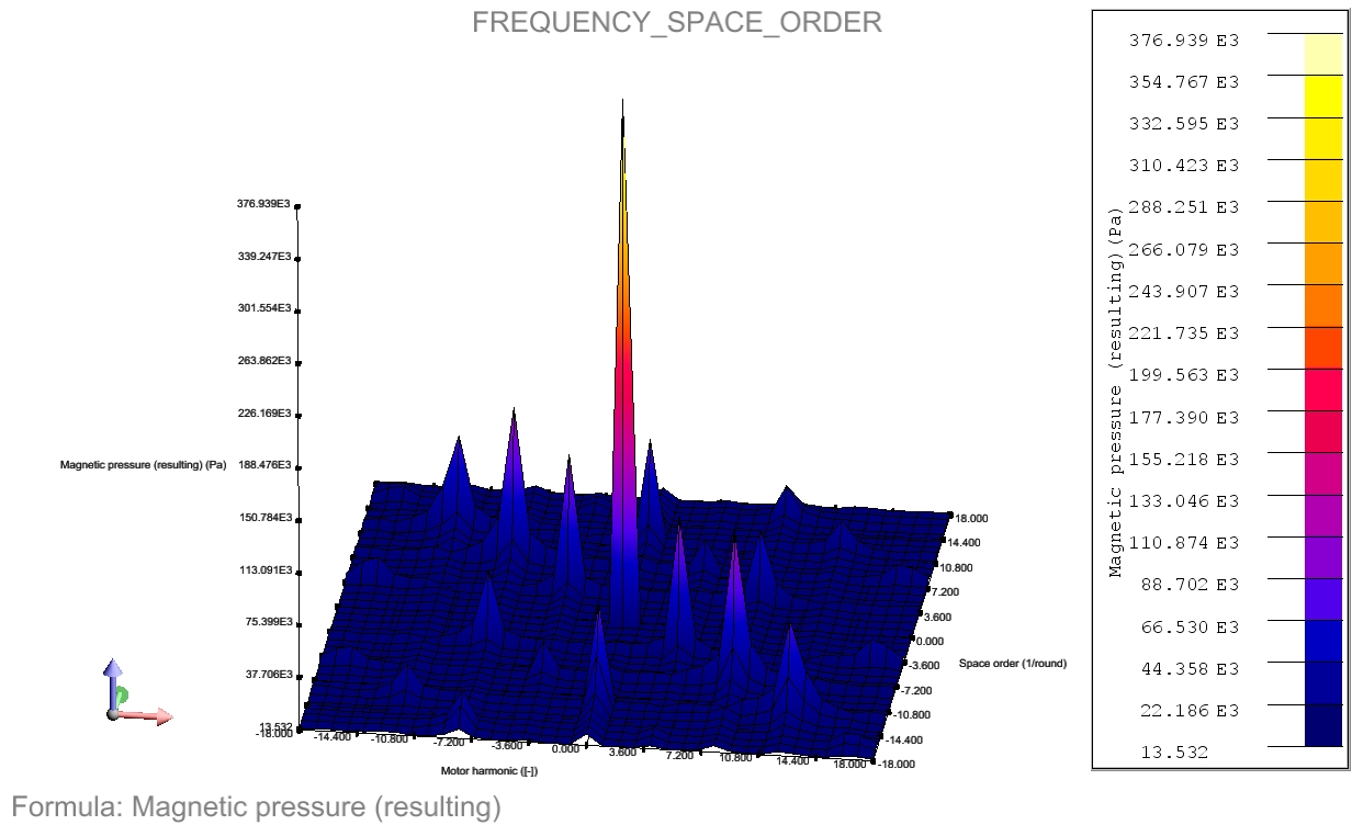 - Double FFT, retourne les valeurs dans le domaine fréquence/ordre spatiale. Ces valeurs sont obtenues par l’application d’une transformée de Fourier 2D, les fréquences sont normalisées par la vitesse de rotation pour être exprimées en termes d’harmoniques moteur.
