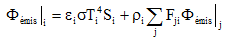 Suite au calcul des facteurs de forme, le flux thermique calculé pour le rayonnement local est exprimé de la manière suivante :