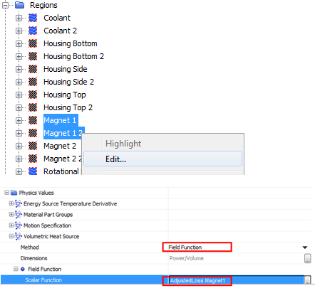 Remarque : dans le cas d'un projet Flux 2D, les densités volumiques de pertes sont projetées sur le maillage du plan centré en z dans STAR-CCM+, et ensuite répétées dans la profondeur (en z) de la région correspondante.
