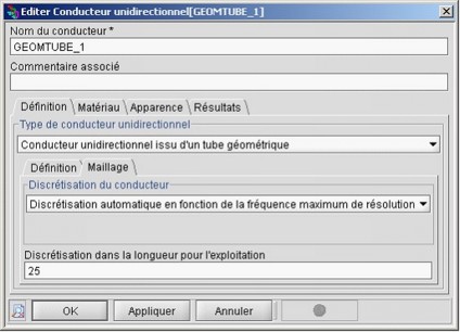 - pour les conducteurs unidirectionnels, au maillage et aux points de discrétisation supplémentaires rajoutés dans la direction de la longueur uniquement pour l'exploitation des résultats *