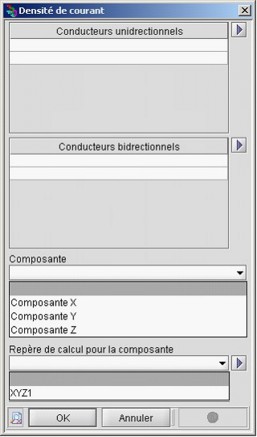 uniquement pour la densité de courant et l'induction magnétique, l'indication de phase, dont la valeur est modifiable par l'utilisateur. Elle représente un déphasage supplémentaire que l'utilisateur peut appliquer à toutes les sources de tension et de courant et par conséquent à la grandeur spatiale considérée. De cette manière, il peut observer l'évolution de la grandeur spatiale sur toute une période de la sinusoïde