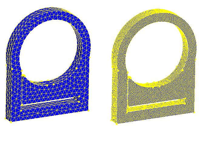 Figure 1. A gauche, un bon maillage pour la méthode intégrale, à droite, un bon maillage éléments finis. - Les éléments de maillage d'un projet doivent être du même type (que des tétraèdres ou hexaèdres, mais pas de mélange des deux).