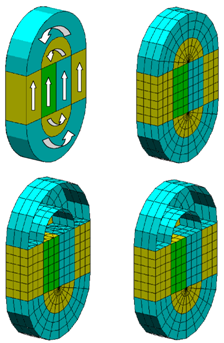 Ce mailleur est particulièrement intéressant pour le maillage des zones minces (entrefers minces, tôles minces, épaisseur de peau, …).
