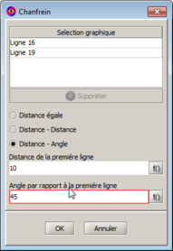 | Sélection graphique | Permet de renseigner les deux lignes nécessaires (obligatoirement de type segment) en les sélectionnant graphiquement* | ||
