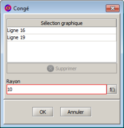 Rayon de l'arc qui représentera le congé (à saisir) |