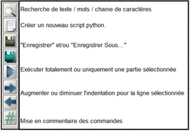 Avec l'éditeur python, l'utilisateur peut lire, écrire et exécuter totalement ou partiellement une partie sélectionnée du script python.
