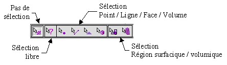 Les choix proposés dans le menu Sélection ou de la barre d'outils Sélection, concernent les entités graphiques ; ils sont présentés dans la figure et le tableau ci-dessous.