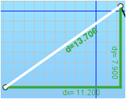 La mesure d'un segment est un raccourci graphique pour obtenir la mesure point – point entre les points extrémités du segment. On obtient donc les mêmes informations D, Dx et Dy.