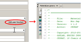 | 4 | En cliquant sur le bouton « Editer fonction utilisateur », le logiciel Flux ouvre le fichier « PhysicalParameter.groovy » dans l'éditeur Python. |