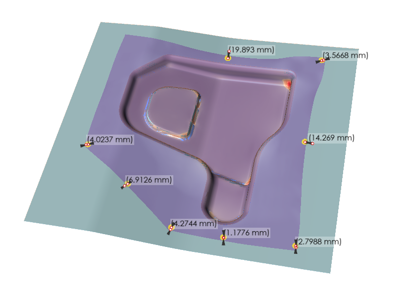 Choose points, lines, or edges to measure how the forming process changes the blank. Tracers are useful to determine the best sized blank and understand how the material flows during the forming process.