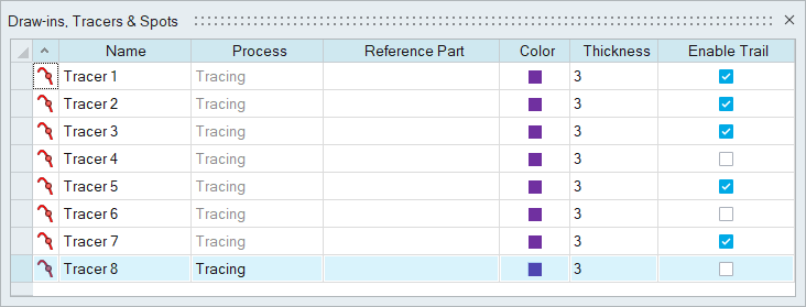 The Tracers Table lists all of the tracers in your model and allows you to edit various attributes.