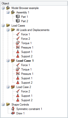 - Some properties such as mass, element size, and thickness can be displayed in the Model Browser by right-clicking on the Object column to open the Browser Properties window.