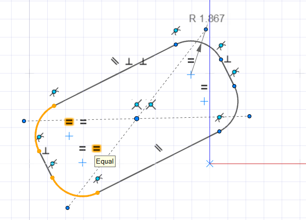 The fillets are created with the dimensions of the radii indicated.Tip: To see which fillets have the same radius, hover over an equal sign. Fillets with the same radius are highlighted in yellow.