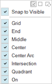 • When placing or dragging end points and other interactive hotspots in sketch mode, the snap selector appears and continually snaps to the closest grid point as you change the position of the cursor. As the cursor approaches an existing sketch curve, the grid snap changes to an "on" snap, allowing you to snap to any point on the curve. Snap hints appear as the cursor passes over snap points such as end points, center points, quad points, and midpoints.