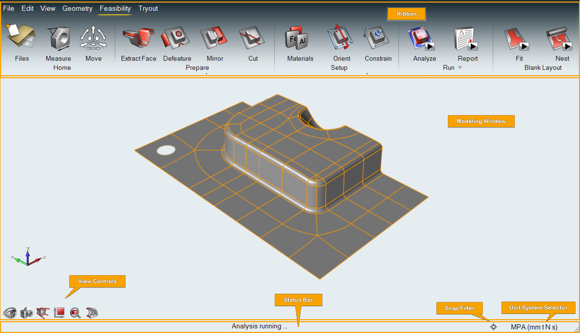 - The modeling window is where you interact with your model, and includes the view controls in the lower left corner.