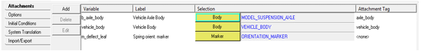 To build a leaf spring model, you must first load the MBD-Vehicle Dynamics Tools preference file in MotionView. Once loaded, HyperWorks remembers and automatically loads the MBD-Vehicle Dynamics Tools preference file each time you start HyperWorks.