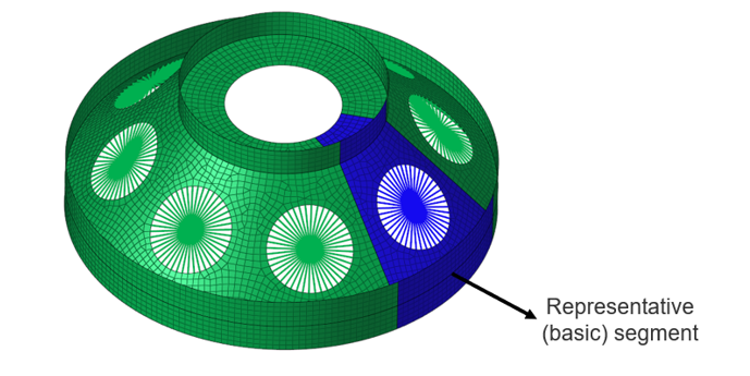 Cyclic symmetry is a type of symmetry in which a representative (or basic) segment, if patterned circularly about an axis of symmetry would result in the full model.