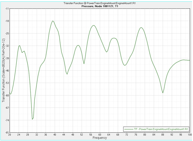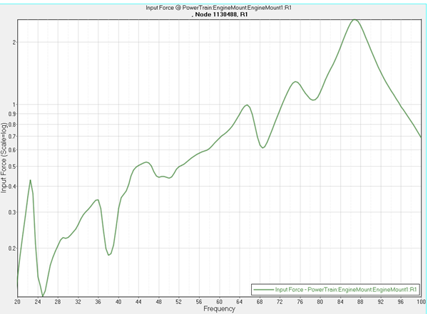 Once the resulting H3D file is loaded into the TPA utility in HyperView, transfer function results are automatically matched up with the attachment forces results. This automated TPA process significantly improves the efficiency and robustness of the TPA analyses.