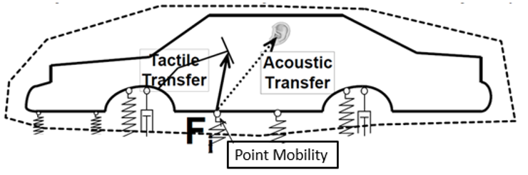 - Identify all the attachment points through which loads may be transferred from the excited structure (Powertrain and Chassis in Figure 1) to the responding structure (the Body in the picture above). Each degree of freedom (dof) at the attachment point becomes a transfer path.