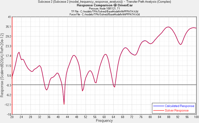 A simplified process has been developed in OptiStruct that allows the necessary data needed for the TPA analysis to be requested (using PFPATH card) in a single frequency response analysis run, where the transfer functions and attachment forces are output to a single H3D file.