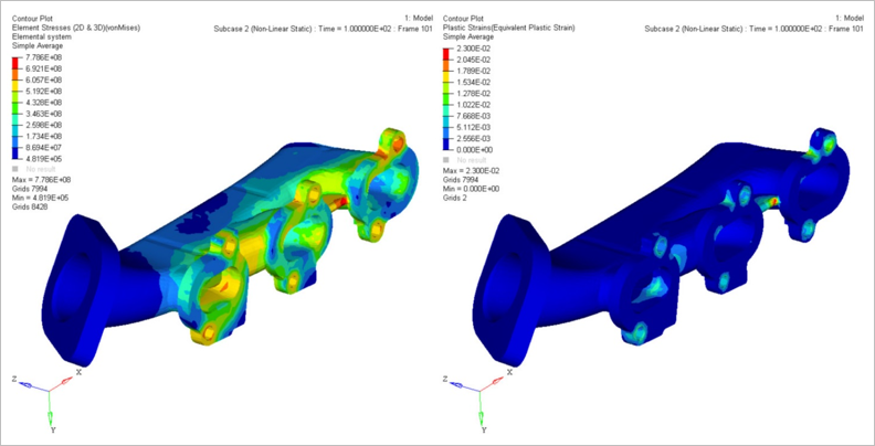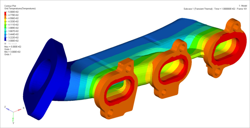 Demonstrates One Step Thermal Transient Stress Analysis using an exhaust manifold.