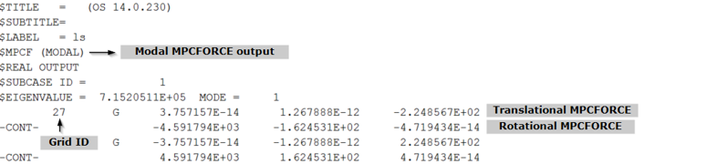 Modal MPCFORCE can be defined as the Multi-Point Constraint Forces and Moments calculated based on the structural Eigenvectors and residual vectors.
