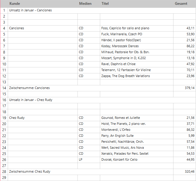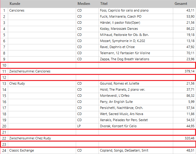 Die Summierung wird jetzt mit den gewünschten Leerzeilen angezeigt.