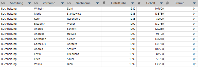 Neue Spalten können im Fenster Vorbereiten erstellt werden.