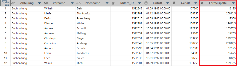 Eine neue Spalte mit einer Formel erstellen, wie in: