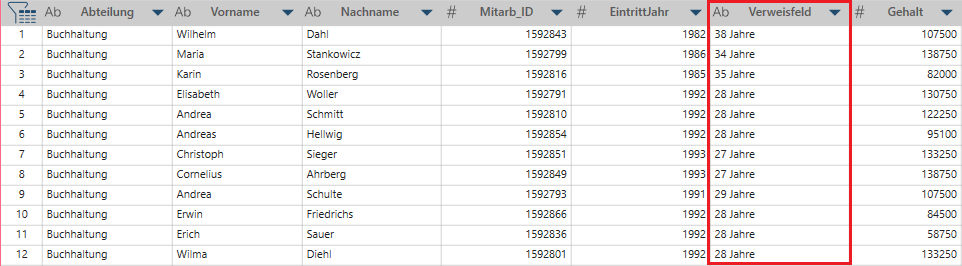 Eine neue Spalte mit einem Verweiswert erstellen, wie in: