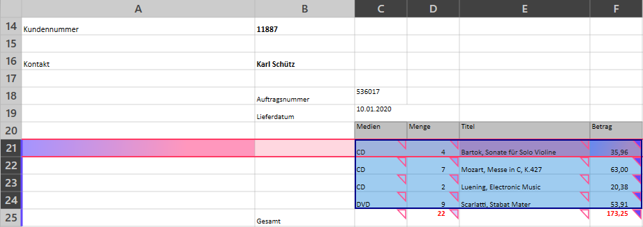 Wir können die Auftragsnummer (Zelle C18) mit den folgenden Eigenschaften selektieren: