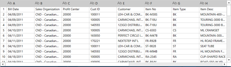 Die Beispieldaten werden in der Vorschautabelle angezeigt: