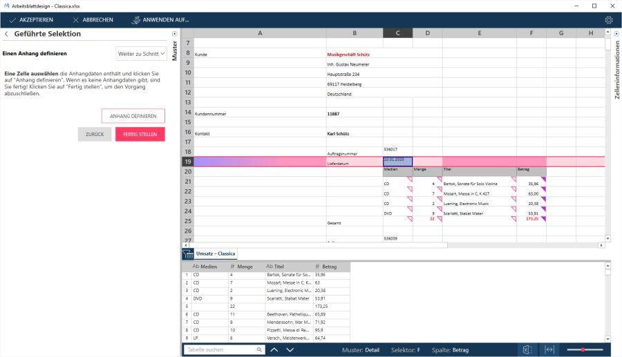 Es ist zu beachten, dass der Assistent in diesem Schritt die erste wichtige Anforderung beim Erstellen von Mustern unterstützt: Das Detailmuster zuerst zu definieren.