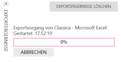 Sie können alle Exportergebnisse aus diesem Fensterbereich löschen, indem Sie auf Exportergebnisse löschen oben rechts im Fensterbereich klicken.