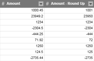 In diesem Beispiel ist die erste Spalte (Amount) die Originalspalte. Amount – Round Up sind die aufgerundeten Höchstwerte von Amount.